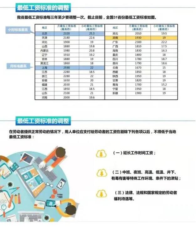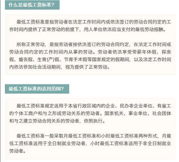 調整后我省月最低工資標準(適用于全日制勞動(dòng)者)分三個(gè)檔,分別為1930元/月、1740元/月、1550元/月;小時(shí)最低工資標準(適用于非全日制勞動(dòng)者)也相應設三個(gè)檔,分別為19元、17元、15元。