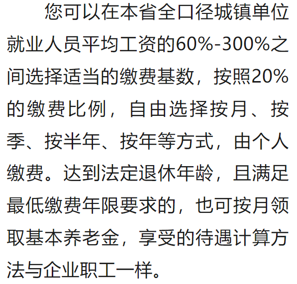 情況三:制度實(shí)施時(shí),您距60周歲的規定領(lǐng)取年齡超過(guò)15年,應按年繳費,累計繳費不少于15年才能領(lǐng)養老金。
